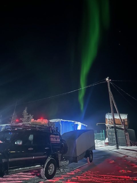 Больше тысячи километров едем по ледовой дороге, по ночам видим северное сияние, Бог давал нам утешение, создавая в морозной ночной атмосфере такую красоту, которая радовала наш глаз, мы останавливались затаив дыхание смотрели на дела рук Господних. Не доезжая до поселка Оленек, в одном из прицепов где было топливо на 2 машины, обломила ступицу, колесо заклинило и так на заклинившем колесе мы доехали до поселка, снова благодарю Господа что поломки Он регулирует, допускает рядом с поселком, ночью, около 12 ночи в поселке Оленек мы нашли теплый гараж в администрации, и заварили колесо, усилив его. Слава Богу за братьев, которые слаженно работали, устраняя поломку.