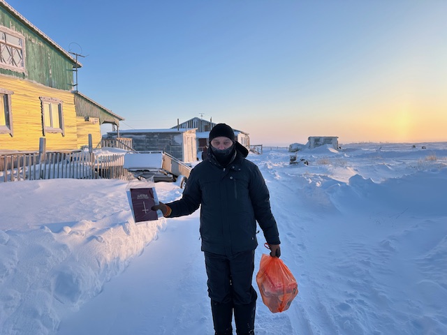 Мир вам дорогие друзья, все кто идут с нами по бездорожьям с евангельской вестью, радоваться! Жив наш Господь и Он дает нам торжествовать победу в Иисусе Христе! В феврале месяце, Господь подарил нам серьезную экспедицию к берегам Ледовитого океана в Якутию, в Арктику, с благовестием, с целью принести Евангелие жителям этих поселков в суровых местах. Господь нас обильно благословил и помог осуществить это служение и сердце радуется от этого, что смогли выполнить поручение Иисуса Христа. Принесли Евангелие на край земли в Анабарский улус, Оленекский улус и остаток Мирнинского района.