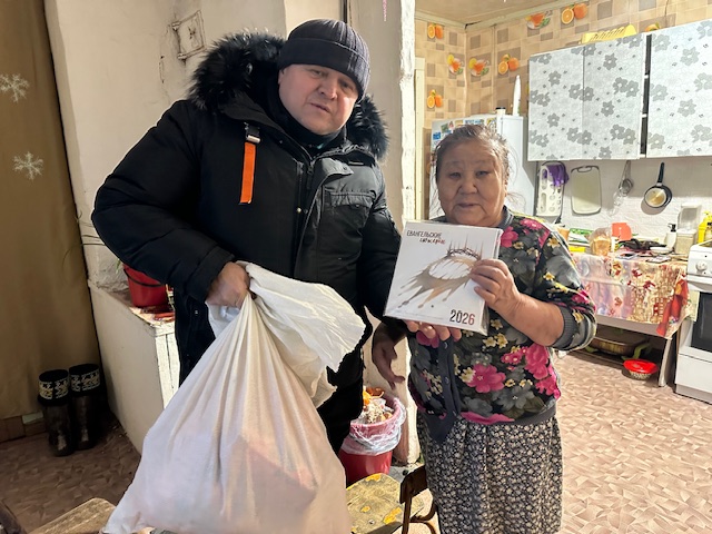 В поселке эвенкийском Жилинда, мы смогли в администрации собрать пожилых людей, кто смог прийти и им рассказать о Господе, они задавали нам вопросы как верить в Иисуса Христа, как молиться, мы объяснили, что сделал Христос для нас и как наш Господь меняет жизнь человека, который верит Ему, оставили им телефон для общения, подарили продуктовые наборы и дальше понесли Евангелие.