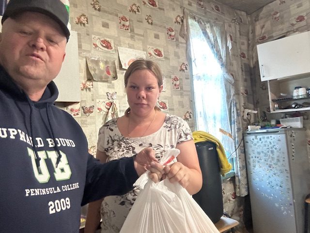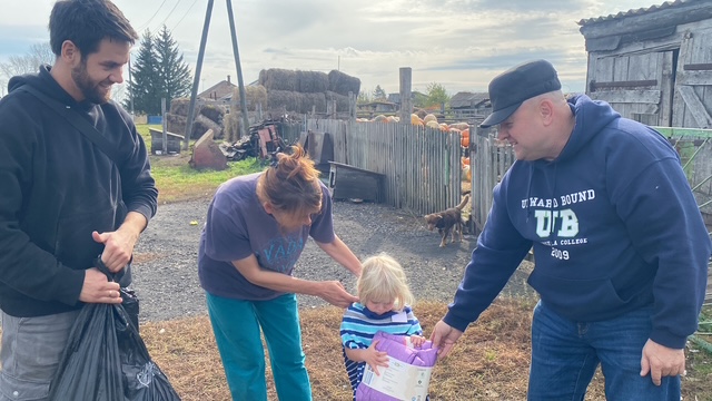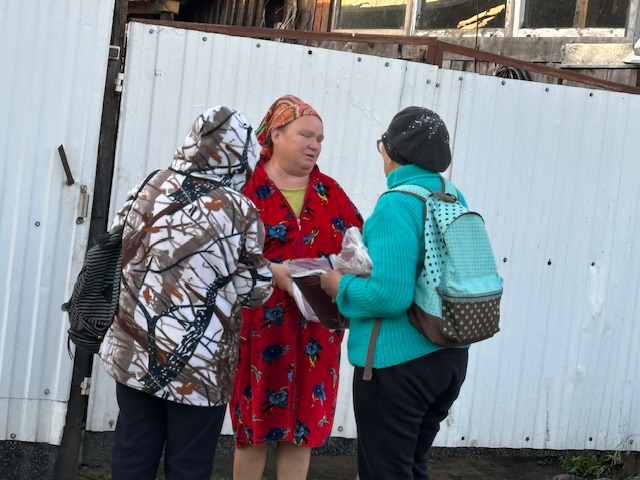 В этом же поселке, идя от дома к дому мы встретили многодетную семью, принесли им вещи, мама плачет и говорит, как она может нас отблагодарить, мы объясняем, что есть Господь, к которому нужно нам идти. Мы молимся о них и идем дальше. В поселке Шахты, у одного дома сестрички пожилые беседуют с женщиной, я подъехал что бы забрать сестер, выходит из дома мужчина, весь расписной, в татуировках, я подумал что сейчас мне придётся сестер защищать, но вдруг я услышал слова от мужчины «мир дому вашему», я выбирал из машины и говорю: «мне это послышалось или вы действительно так сказали, так говорят только те, кто знает Иисуса Христа». И у нас получился с ними прекрасный диалог, оказывается 31 год наш брат уверовал в Господа находясь в тюрьме, к ним в тюрьму приехали верующие с проповедью Евангелия и песнями, когда пели и проповедовали, Господь коснулся его сердца и его жестокое, бандитское сердце обратилось к Иисусу Христу. Он женился на сестре, которая приезжала в тюрьму, они живут в маленьком поселке Шахты, здесь когда-то была шахта, сейчас нет ее и нет работы у людей. Как эта семья была очень рада встрече с нами, они хотят общаться и изучать Евангелие. Вот так, идя от дома к дому с Евангелием, мы как будто забрасываем невод, в который попадает разная рыба и иногда бывает удивительный «улов». Слава Богу за Его великие дела!