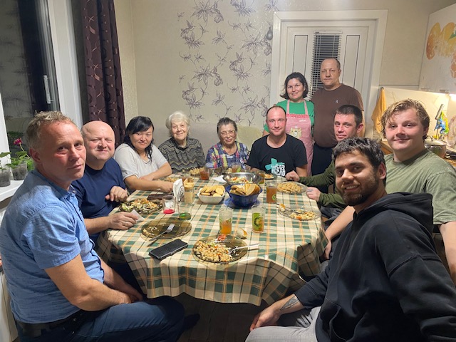 Сестра Катя, она поехала со своим мужем Егором, давно слышала обо мне и постоянном служении благовестия которое мы совершаем вопреки разным сложным обстоятельствам, и мечтала поехать и это осуществилось, очень радовалась и благодарила Господа за эту возможность. Каждое утро мы получаем заряд бодрости от размышления над словом Божиим и вдохновения от Господа, чтобы дальше идти с Евангелием к людям. Братья и сестры спланировали время, умнички, оставили на время свою работу, чтобы погрузиться в мир послушания Господу, исполнения Его воли.