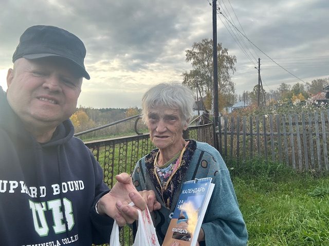 В поселке Петухово, где всего 8 домов, Господь подарил встречу с женщиной, которая рассказала нам как Бог ее спас и Евангелию, которое мы ей подарили, была очень рада. Когда она убирала в стайке, где находились коровы, у нее случился инсульт, она там упала, но к ней пришли соседи, которые спасли ее. И эта женщина, говорит нам, что всегда молится Богу. Мы подсказали как общаться с Богом, рассказали ей Евангелие. Вот такие, кажется, простые встречи, но запланированные Господом были огромным благословением для нас, и мы могли быть благословением для этих людей.
