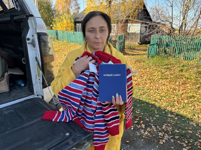 В другом маленьком поселке встретили женщину, подарили ей Евангелие, она рассказала о том что муж у нее умирает от рака, она говорит что они в безнадеге находятся, когда мы сказали что можно молиться Богу и самое первое о чем можно помолиться, это попросить прощения у Господа, эта женщина ухватилась за эту весть как за соломинку, что человек примирившийся с Богом имеет жизнь вечную, со смертью жизнь не заканчивается, для нее это было как свет в конце тоннеля, огромной радостью.
